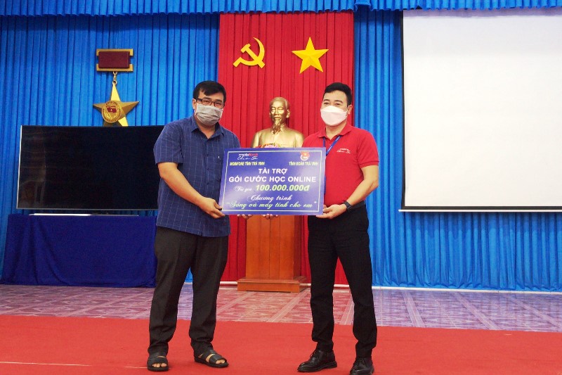 Anh Trần Tuấn Anh – Giám đốc Mobifone Trà Vinh trao gói cước học online cho huyện đoàn Cầu Kè