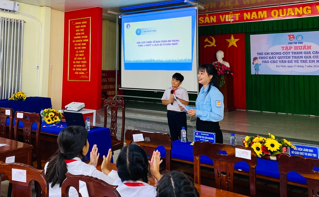 Theo Luật Trẻ em năm 2016, trẻ em có 04 nhóm quyền chủ yếu. Trong đó có nhóm quyền được tham gia, được tự do bày tỏ quan điểm và ý kiến về những vấn đề có liên quan đến cuộc sống của mình. Tổ chức các hoạt động tập huấn, bồi dưỡng, nâng cao các kiến thức về quyền trẻ em và kỹ năng thực hiện quyền tham gia của trẻ em là hết sức cần thiết để tạo điều kiện cho trẻ em được học tập, giao lưu, trao đổi kinh nghiệm, tham gia tìm hiểu về quyền và bổn phận của mình. Do đó, tập huấn trẻ em nồng cốt tham gia các mô hình thúc đẩy quyền tham gia của trẻ em là một nội dung quan trọng góp phần thực hiện tốt công tác bảo vệ, chăm sóc và giáo dục trẻ em, đưa Luật trẻ em 2016 đi vào cuộc sống. Đồng thời, đây là hoạt động thiết thực góp phần thực hiện tốt Kế hoạch số 186-KH/TĐTN-TTNTH, ngày 23/4/2024 của Ban Thường vụ Tỉnh đoàn Trà Vinh về việc “Thực hiện Đề án “Đoàn TNCS Hồ Chí Minh thúc đẩy quyền tham gia của trẻ em vào các vấn đề về trẻ em” năm 2024 trên địa bàn tỉnh Trà Vinh”./.