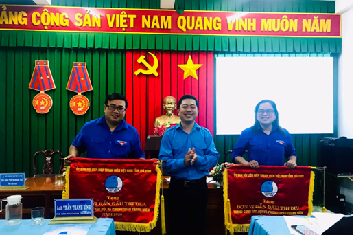 Anh Võ Minh Nhựt – Chủ tịch Ủy ban Hội tỉnh trao cờ cho 02 đơn vị dẫn đầu thi đua công tác Hội và phong trào thanh niên tỉnh Trà Vinh năm 2020