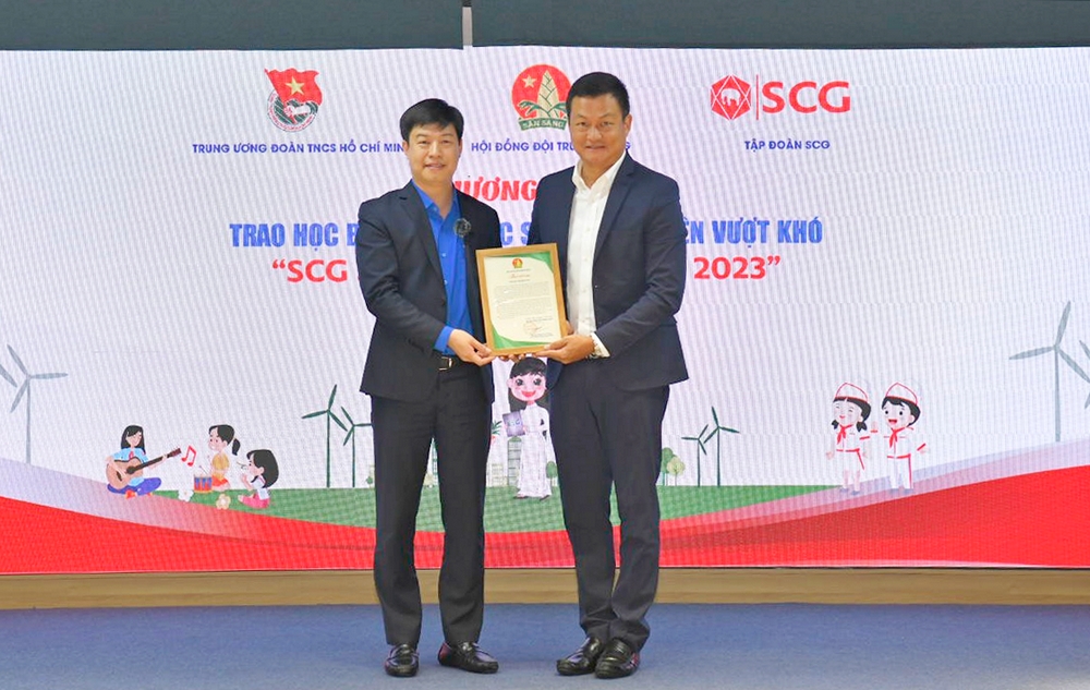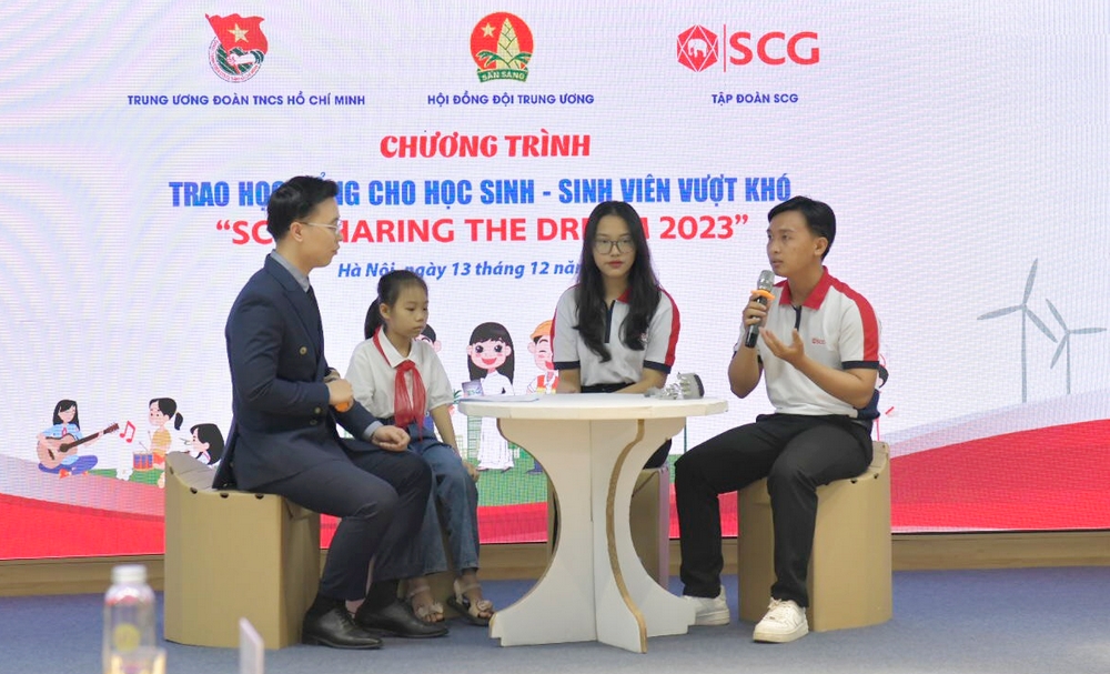 Sáng 13/12, tại Hà Nội, Hội đồng Đội Trung ương phối hợp cùng Tập đoàn SCG tổ chức chương trình trao học bổng SCG Sharing The Dream 2023 cho học sinh, sinh viên có hoàn cảnh khó khăn với chủ đề “Chắp cánh ước mơ cho tương lai bền vững”.