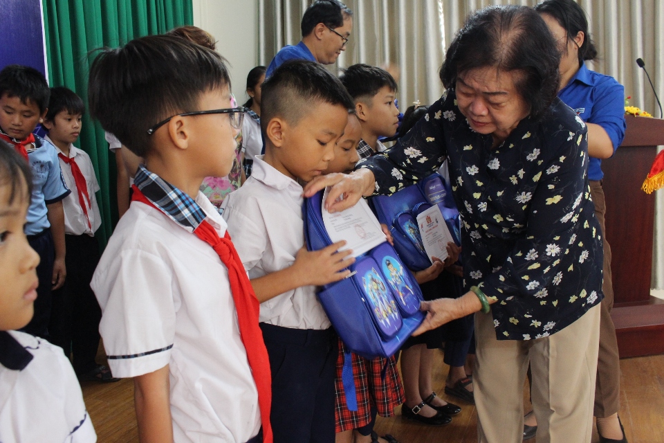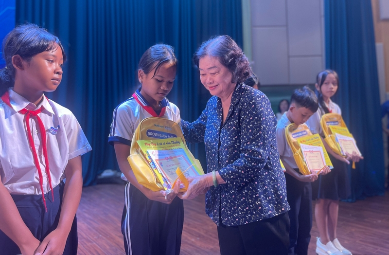 Đồng chí Trương Mỹ Hoa, nguyên Phó Chủ tịch nước trao học bổng cho các em học sinh có hoàn cảnh khó khăn