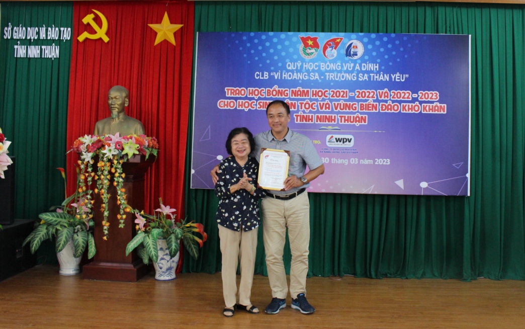 Trước đó, chiều 30/3, Tỉnh đoàn phối hợp Sở Giáo dục và Đào tạo tỉnh Ninh Thuận tổ chức chương trình trao học bổng Vừ A Dính và CLB “Vì Hoàng Sa – Trường Sa thân yêu” năm học 2021-2022 và 2022-2023 cho học sinh dân tộc thiểu số và vùng biển, đảo khó khăn tỉnh Ninh Thuận.