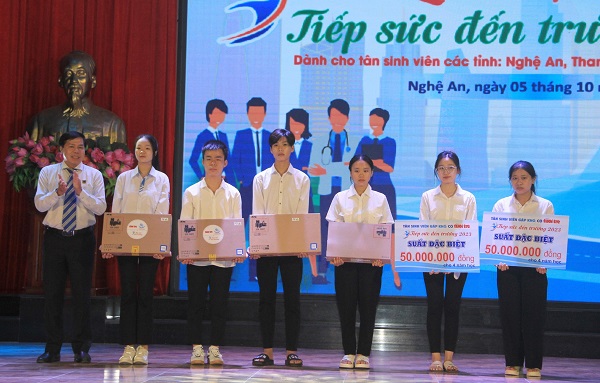 Tại chương trình, 02 sinh viên có hoàn cảnh khó khăn nhất được nhận 2 suất học bổng đặc biệt có giá trị 50 triệu đồng mỗi suất trong suốt 4 năm và 4 sinh viên sẽ được nhận thêm 4 chiếc laptop để phục vụ cho quá trình học tập của mình