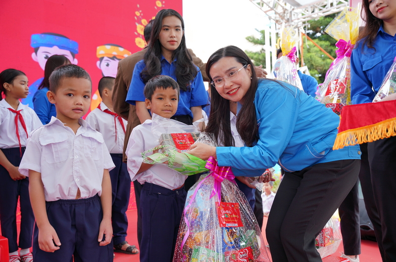 Bí thư Trung ương Đoàn, Chủ tịch Hội đồng Đội Trung ương Nguyễn Phạm Duy Trang tặng quà cho thiếu nhi có hoàn cảnh khó khăn tại TP Pleiku