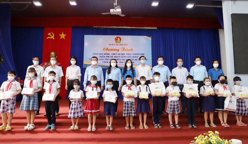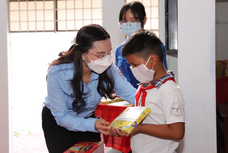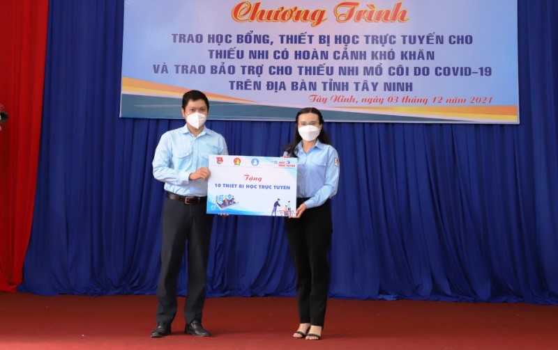 Cụ thể, Bí thư Trung ương Đoàn Nguyễn Phạm Duy Trang đã trao tặng 10 thiết bị học tập trực tuyến trị giá gần 30 triệu đồng cho 10 em thiếu nhi có hoàn cảnh khó khăn theo chương trình “Cùng em học trực tuyến”; tặng 10 suất học bổng, mỗi suất 1 triệu đồng cho 10 em có hoàn cảnh khó khăn; trao tặng 100 bộ học cụ Thiên Long, mỗi bộ 150 ngàn đồng, tổng giá trị 15 triệu đồng cho 100 em thiếu nhi có hoàn cảnh khó khăn theo chương trình “Trao học cụ - Tiếp tri thức”.