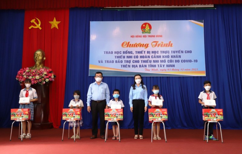 Đặc biệt, Hội đồng Đội Trung ương cũng trao bảo trợ dài hạn cho 07 em thiếu nhi mồ côi do đại dịch Covid-19 của tỉnh Tây Ninh, trong đó có 05 em thuộc địa bàn huyện Dương Minh Châu mồ côi cha, mẹ được Hội đồng Đội Trung ương và Công ty Cổ phần Sữa Quốc tế (IDP), Công ty Cổ phần Chứng khoán Bản Việt bảo trợ mỗi tháng 2 triệu đồng đến năm 18 tuổi (tổng số tiền bảo trợ mỗi năm là 168 triệu đồng). Ngoài ra, các em còn được hỗ trợ các khóa học trực tuyến về giáo dục kỹ năng, ngoại ngữ để phát triển năng lực bản thân; tham gia các hoạt động trải nghiệm, các hoạt động thể chất do Hội đồng Đội Trung ương và Nhãn hàng Kun – Công ty cổ phần sữa Quốc tế phối hợp tổ chức.