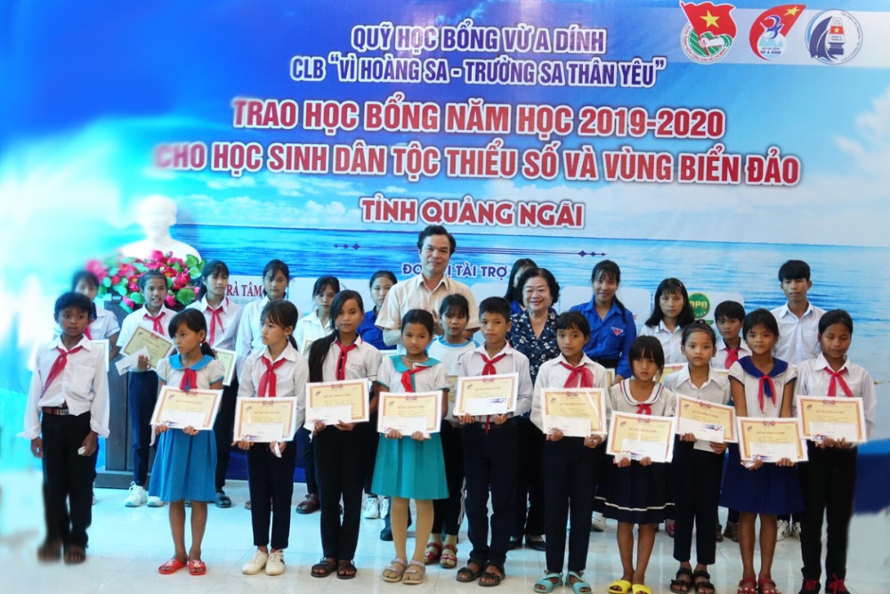 * Tại Quảng Ngãi: Đoàn đã trao 60 suất học bổng Vừ A Dính và 80 suất học bổng CLB Vì Hoàng Sa - Trường Sa thân yêu, mỗi suất trị giá một triệu đồng tiền mặt, cho các em học sinh các cấp tiểu học, THCS và THPT là những tấm gương học tập tốt có hoàn cảnh khó khăn trên địa bàn các huyện miền núi Tây Trà, Sơn Hà; các huyện, thành phố ven biển như Mộ Đức, TP. Quảng Ngãi và huyện đảo Lý Sơn.
