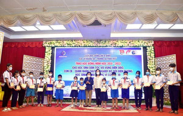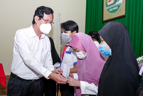 Tại An Giang, Quỹ Học bổng Vừ A Dính, Câu lạc bộ “Vì Hoàng Sa - Trường Sa thân yêu” tổ chức trao tặng 45 suất học bổng Vừ A Dính năm học 2021-2022 cho 45 em học sinh dân tộc Chăm có hoàn cảnh khó khăn trên địa huyện An Phú.