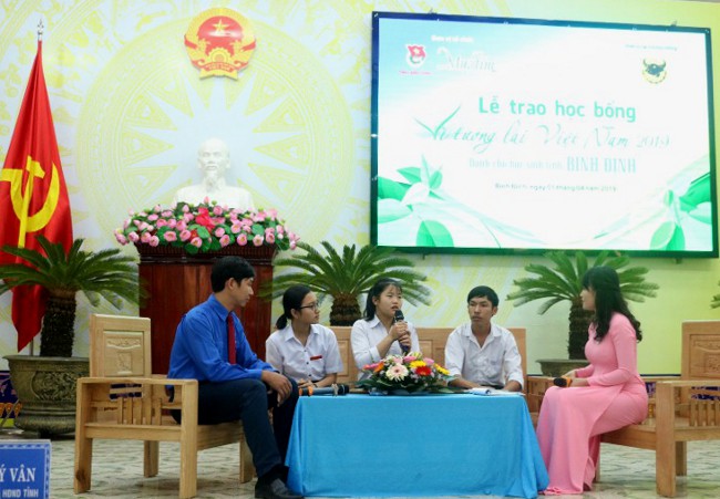 Tại chương trình, Báo Khăn Quàng Đỏ - Mực Tím đã dành tặng 50 suất học bổng cho 50 em học sinh vượt khó học tốt tại tỉnh Bình Định với tổng trị giá 100 triệu đồng do Công ty Cổ phần Phân bón Bình Điền tài trợ.