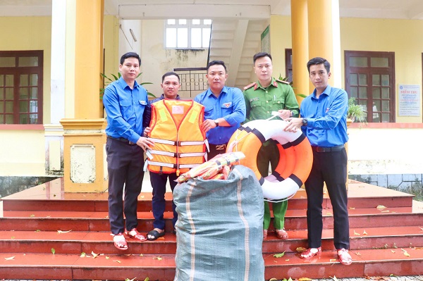 Tại đây, đoàn đã trao tặng 200 suất quà, mỗi suất trị giá 500.000đ bao gồm tiền mặt và nhu yếu phẩm cho bà con xã Kim Thuỷ; trao tặng 20 áo phao và phao cứu sinh cho Đoàn xã Thái Thuỷ.