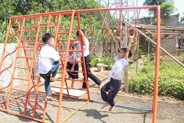 Các em vui mừng khi được chơi các trò chơi tại khu vui chơi