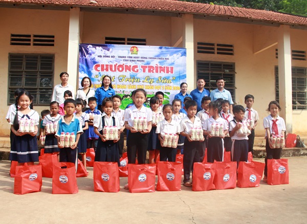 Trước đó vào ngày 14/5, Hội đồng Đội tỉnh Bình Phước và Trung tâm hoạt động TTN tỉnh đã tổ chức chương trình “Một triệu ly sữa” tại các điểm trường huyện Đồng Phú.