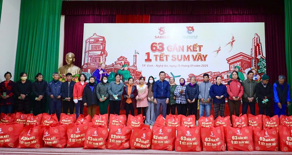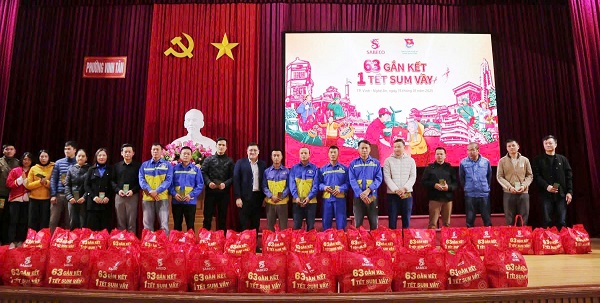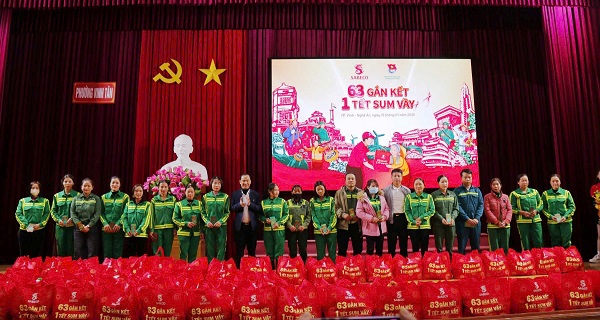 Nghệ An là một trong 24 tỉnh thành được tổ chức chương trình “63 gắn kết - 1 Tết sum vầy” với tổng cộng hơn 7.000 phần quà trao tặng công nhân, ngư dân, chiến sĩ biên phòng, người dân có hoàn cảnh khó khăn…