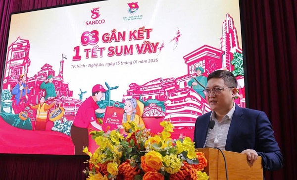Phát biểu tại chương trình, thay mặt Tỉnh đoàn, Thành đoàn Vinh, đồng chí Hồ Đức Việt, Ủy viên Ban Thường vụ Tỉnh đoàn, Bí thư Thành đoàn Vinh cho biết luôn trân trọng sự đồng hành của SABECO đối với thanh niên công nhân, người lao động tỉnh Nghệ An trong nhiều năm qua và cảm ơn những món quà SABECO dành tặng cho công nhân, người lao động có hoàn cảnh khó khăn tỉnh Nghệ An.