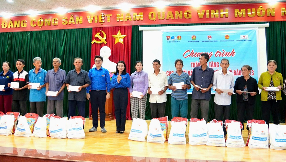 Trong đó, Trung ương Đoàn, Hội đồng Đội Trung ương hỗ trợ: 400 triệu đồng hỗ trợ thiếu nhi và người dân bị ảnh hưởng bởi cơn bão số 13 gây ra từ Công ty TNHH Amway Việt Nam, Công ty Cổ phần Tập đoàn Bảo Tín; 3.000 phần quà dụng cụ học tập dành cho thiếu nhi, trị giá 300 triệu đồng từ Công ty cổ phần Tập đoàn Thiên Long. Thành đoàn TP. Hồ Chí Minh phối hợp Tỉnh đoàn Đắk Lắk hỗ trợ 600 suất quà, mỗi suất trị giá 2 triệu đồng dành cho hộ gia đình thuộc diện hộ nghèo, hộ gia đình có hoàn cảnh khó khăn bị thiệt hại do bão cho 3 xã.
