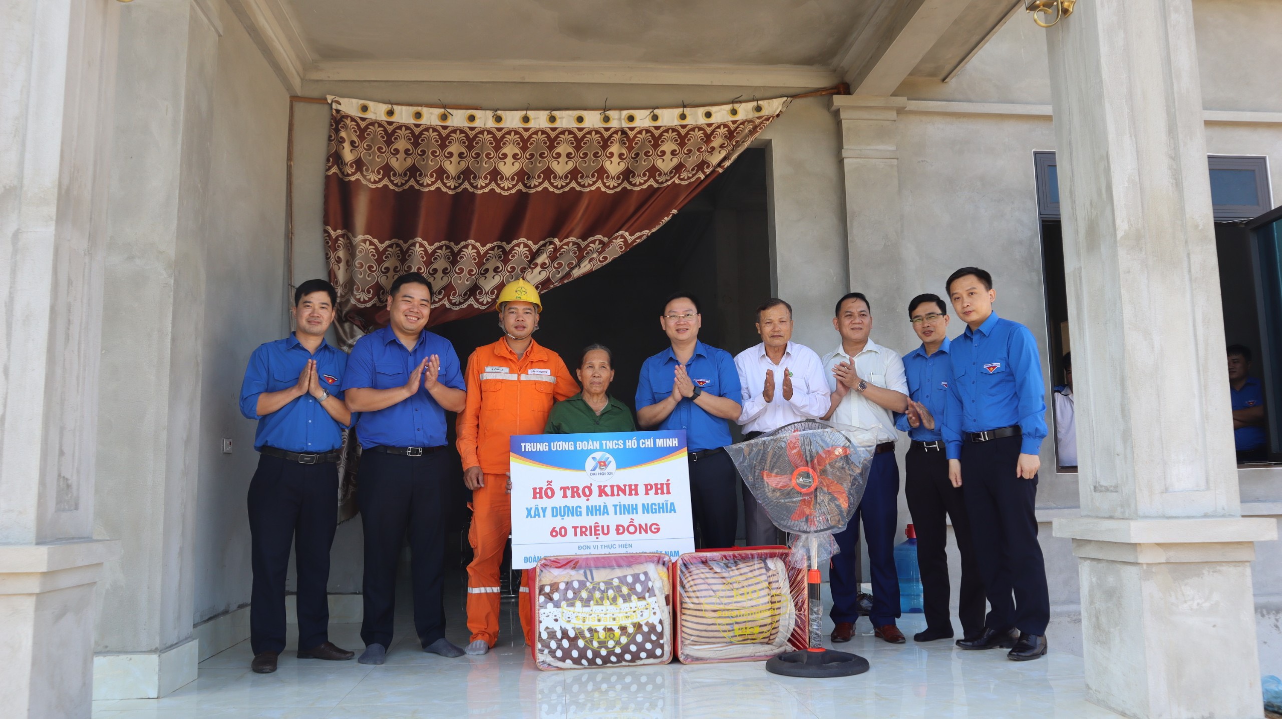 Đoàn công tác Trung ương Đoàn, Đoàn Thanh niên Tập đoàn Điện lực Việt Nam trao tặng kinh phí hỗ trợ xây dựng nhà tình nghĩa cho gia đình bà Dương Thị Cú)