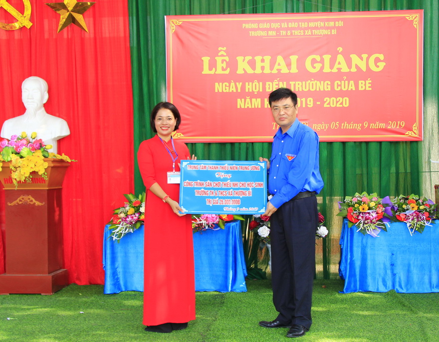 Nhân dịp này Trung tâm Hoạt động Thanh thiếu niên tỉnh Hòa Bình tặng trống Đội cho Liên đội nhà trường, các đơn vị, doanh nghiệp cũng dành tặng xe đạp, mũ bảo hiểm và nhiều phần quà cho các em học sinh.