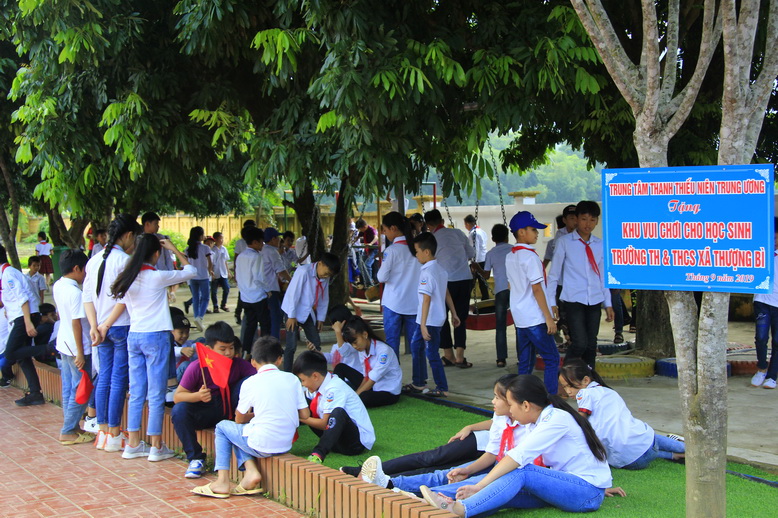 Nhằm đáp ứng mong muốn của các em, hưởng ứng Năm thanh niên tình nguyện, Trung tâm Thanh thiếu niên Trung ương đã vận động cán bộ, viên chức quyên góp tặng cho nhà trường sân chơi thiếu nhi trị giá 26 triệu đồng. Sân chơi có các thiết bị trò chơi được làm từ các vật liệu an toàn, thân thiện với môi trường, tận dụng các đồ cũ, hỏng còn sử dụng được, đây những trò chơi đòi hỏi sự vận động, khéo léo mạnh mẽ, giúp các em học sinh được vui chơi, vận động để từ đó phát triển toàn diện thể chất và tinh thần. Ngoài sân chơi, Trung tâm còn tặng các em 400 quyển vở, 300 khăn quàng đỏ, 100 chiếc áo đồng phục trắng, hỗ trợ 10 em học sinh có hoàn cảnh khó khăn đạt thành tích học tập tốt 7 triệu đồng.