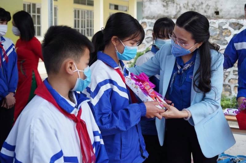 “Trong dịp kỷ niệm 90 năm ngày thành lập Đoàn, Hội đồng Đội T.Ư đã có nhiều hoạt động hướng tới các em học sinh với mong muốn đồng hành cùng các em. Sách là kho tàng tri thức mang đến cho các em những kiến thức bổ ích. Vì vậy chúng tôi đã thực hiện chương trình tặng tủ sách cho trường học. Đây là những cuốn sách đã được chọn lọc mà trong nhà trường không có như: sách về những tấm gương anh hùng liệt sĩ, sách về khoa học, về những kỹ năng bảo vệ bản thân…”, chị Nguyễn Phạm Duy Trang cho biết.