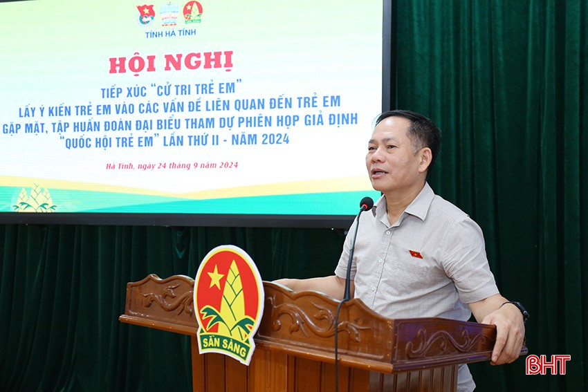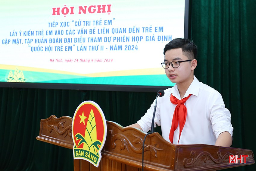 Hội nghị cũng đã nghe báo cáo của đoàn đại biểu về công tác chuẩn bị các điều kiện cần thiết để tham gia Phiên họp giả định “Quốc hội trẻ em” năm 2024. Theo đó, đoàn đại biểu trẻ em Hà Tĩnh gồm 5 đại biểu.