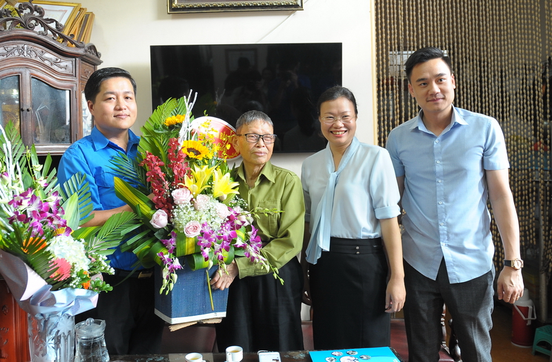 Đoàn công tác Tỉnh đoàn Bắc Ninh tặng hoa chúc mừng nhà giáo Nguyễn Đức Thìn |