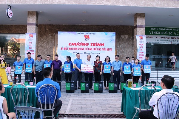 Thực hiện Kế hoạch hoạt động hè năm 2020, Thành đoàn Vinh Ra mắt mô hình chung cư hạn chế rác thải nhựa và đẩy mạnh hoạt động chợ dân sinh hạn chế rác thải nhựa. Ban Thường vụ Thành đoàn đã lắp đặt 10 điểm thu gom rác thải nhựa, dán 300 banner tuyên truyền tại sảnh tất cả các tầng khu chung cư. Tiến hành thu gom rác thải nhựa và đổi 150 làn cói, 150 chai thủy tinh lấy chai, lọ và các chế phẩm của nhựa đã qua sử dụng.