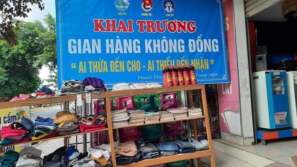 Xuất phát từ tấm lòng “lá lành đùm lá rách”, nhiều cấp bộ Đoàn trong tỉnh đã thành lập những “Gian hàng không đồng” để cấp phát thực phẩm tiêu dùng, quần áo miễn phí cho những người gặp khó khăn. Những gian hàng này đã kết nối nhiều tấm lòng nhân ái giúp đỡ những người khó khăn, người có hoàn cảnh khó khăn nhận được những bao gạo, chai dầu ăn, nước mắm… và cho đến những bộ quần áo đầy tình yêu thương.