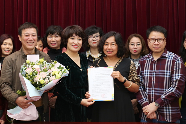 Đồng chí Lê Hồng Hạnh, Uỷ viên BCH Đảng bộ, Chủ tịch Công đoàn cơ quan TƯ Đoàn trao quyết định hợp nhất Công đoàn cơ sở Báo Thiếu niên Tiền phong và Nhi Đồng