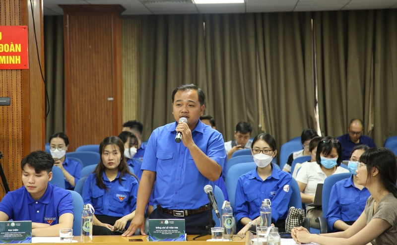 Đồng chí Lê Văn Vin - Phó Bí thư Tỉnh đoàn Quảng Ngãi trao đổi về những thuận lợi, khó khăn và kết quả đạt được trong triển khai chương trình “Triệu cây xanh - Vì một Việt Nam xanh” năm 2021 tại tỉnh Quảng Ngãi
