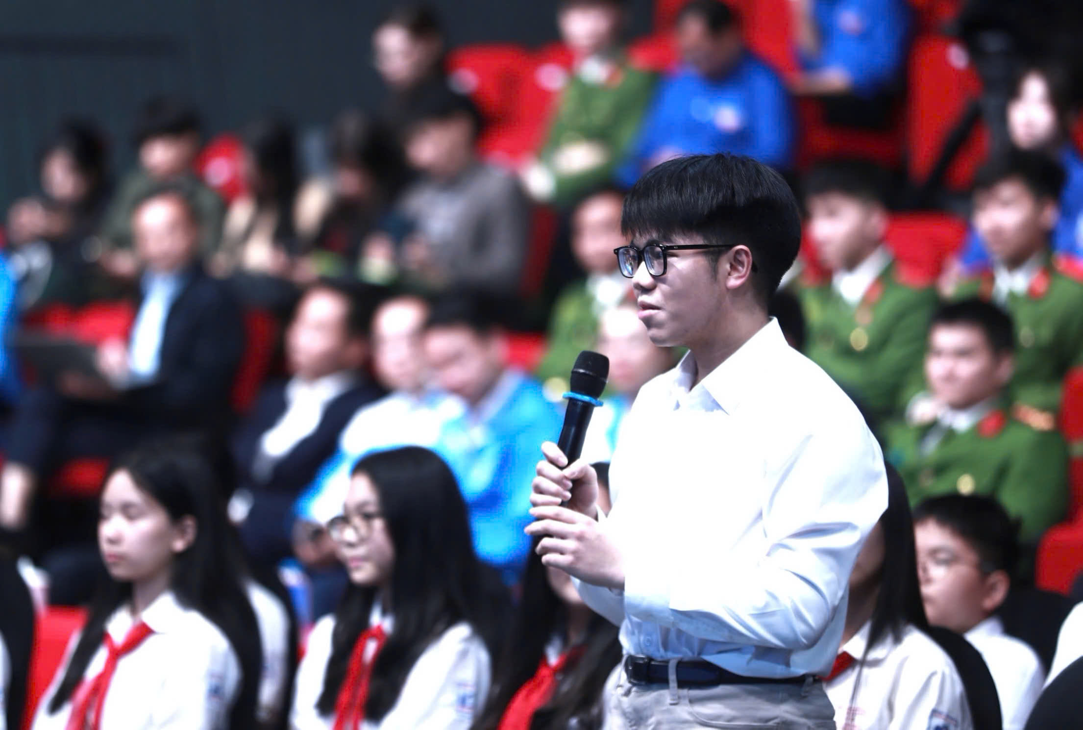 Tham dự trực tiếp Diễn đàn tại trường quay, Đại úy Phạm Tuấn Hưng, Bộ Tư lệnh Thủ đô Hà Nội đặt câu hỏi: Trong bối cảnh hiện nay, các thế lực thù địch ngày càng sử dụng nhiều chiêu thức tinh vi để xuyên tạc đường lối của Đảng, bôi nhọ lãnh đạo và kích động chia rẽ trong xã hội, đặc biệt là trên không gian mạng, trong đó chủ yếu hướng tới thanh niên. Vậy Trung ương Đoàn có giải pháp gì để bồi dưỡng một thế hệ thanh niên vừa vững vàng về bản lĩnh chính trị, vừa sắc bén trong tranh luận, có khả năng chủ động dẫn dắt dư luận một cách tích cực, hiệu quả?