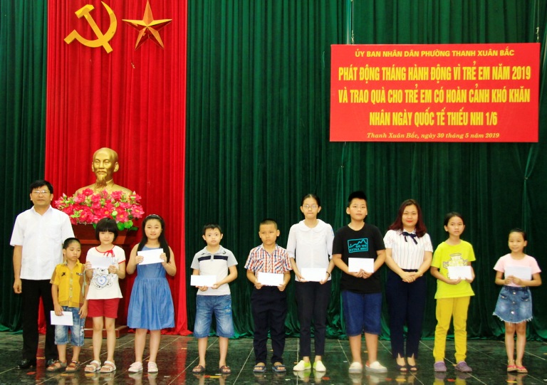 Ngày 30/5, tại UBND phường Thanh Xuân Bắc, Trung tâm Thanh thiếu niên Trung ương phối hợp với UBND phường Thanh Xuân Bắc tổ chức phát động Tháng hành động Vì trẻ em năm 2019 và trao tặng 30 suất quà, trị giá 300 nghìn đồng /suất cho các em học sinh vượt khó có thành tích học tập tốt; trẻ em khuyết tật, mồ côi và các trẻ em có hoàn cảnh khó khăn trên địa bàn phường Thanh Xuân Bắc, quận Thanh Xuân.