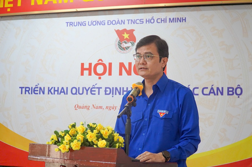 Đồng chí Bùi Quang Huy, Bí thư thứ nhất Trung ương Đoàn phát biểu giao nhiệm vụ, chúc mừng các tân Phó Bí thư Tỉnh đoàn Quảng Nam