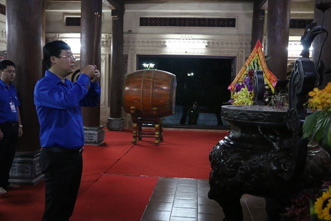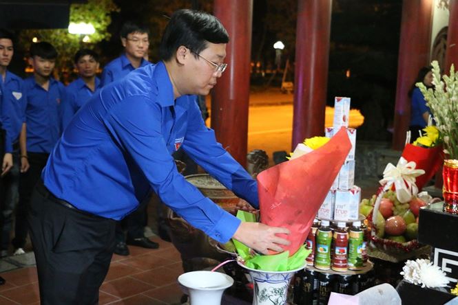 Bí thư thứ nhất Trung ương Đoàn Lê Quốc Phong dâng hương tại nhà thờ 13 anh hùng liệt sỹ TNXP Truông Bồn.
