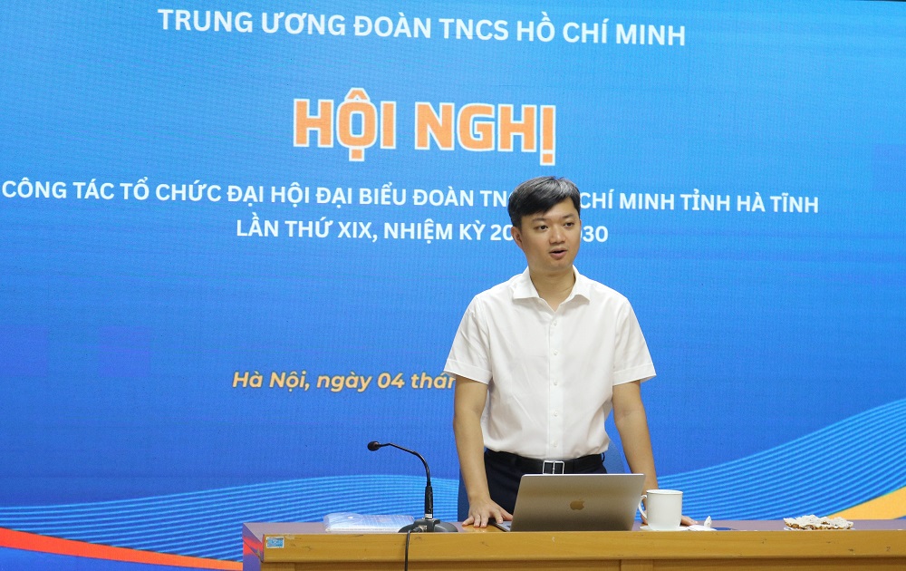 Đồng chí Nguyễn Ny Hương- Bí thư Tỉnh đoàn Hà Tĩnh báo cáo công tác chuẩn bị Đại hội Đoàn tỉnh Hà Tĩnh