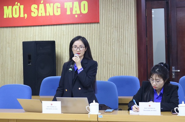 Đồng chí Vừ Thị Mai Dinh, Bí thư Tỉnh đoàn Lai Châu báo cáo công tác chuẩn bị Đại hội Đoàn tỉnh Lai Châu