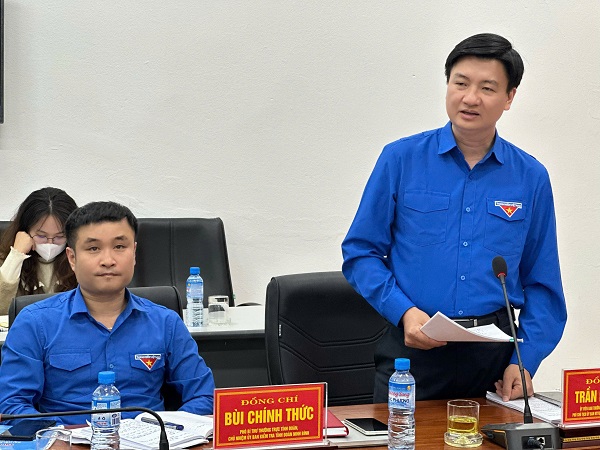 Đồng chí Trần Ngọc Nam- Bí thư Tỉnh đoàn Ninh Bình báo cáo công tác chuẩn bị Đại hội Đoàn tỉnh Ninh Bình