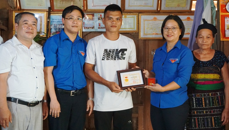 Cũng tại huyện Quan Sơn đại diện Trung ương Đoàn đã trao huy hiệu “Tuổi trẻ dũng cảm” cho đoàn viên Phạm Bá Huy (26 tuổi, ngụ tại bản Nhài, xã Sơn Điện, huyện Quan Sơn), vì đã có hành động dũng cảm cứu người trong mưa lũ.