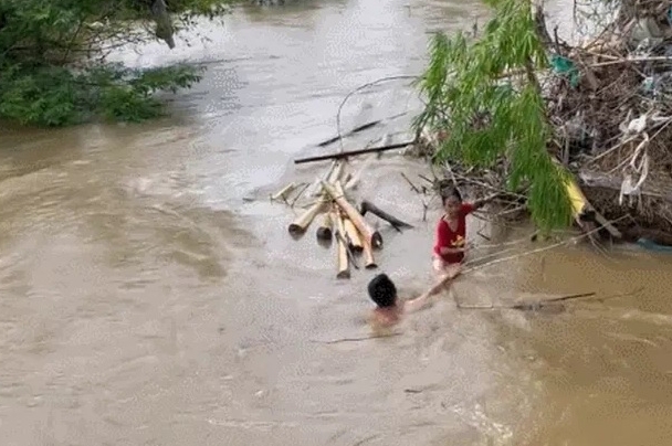Anh Sao bơi ra giữa sông giải cứu cháu bé (ảnh cắt từ Clip)