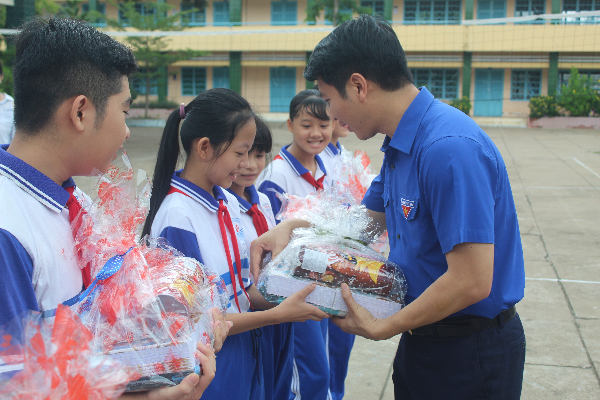 Buổi sáng cùng ngày, đồng chí Nguyễn Ngọc Lương - Bí thư Trung ương Đoàn, Chủ tịch Hội đồng Đội Trung ương đã đến thăm, tặng quà cho các em học sinh tham gia sinh hoạt hè tại Trường THCS Mỹ Hóa, Tp. Bến Tre do Đoàn phường 7 tổ chức.