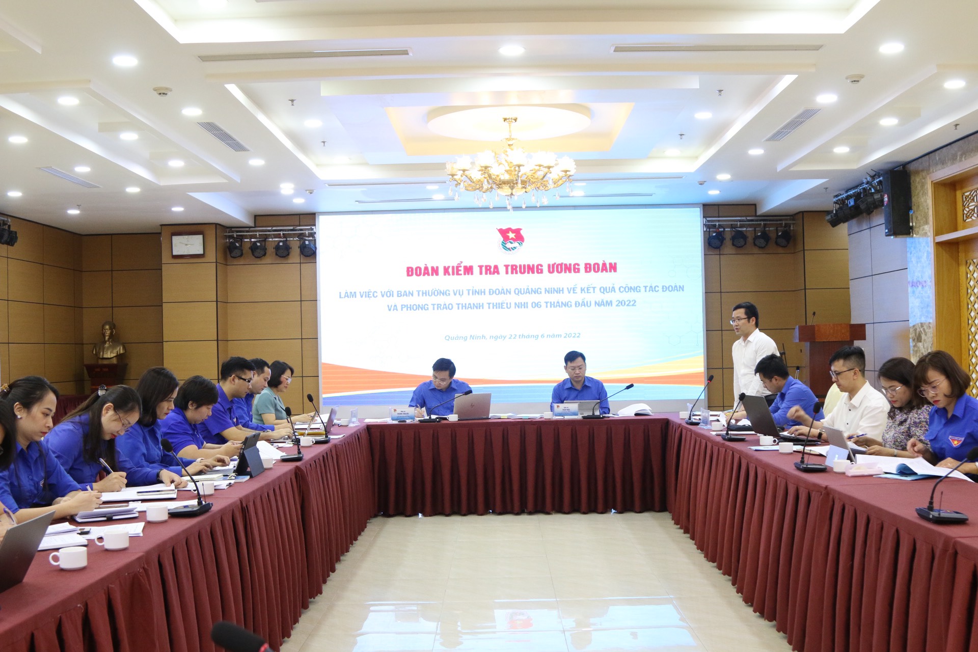 Chiều cùng ngày, Đoàn công tác của Trung ương Đoàn tiếp tục có chương trình làm việc và kiểm tra kết quả Công tác Đoàn và phong trào TTN 6 tháng đầu ănm với Ban Thường vụ Tỉnh đoàn Quảng Ninh. Đồng chí Lê Thị Kim Cúc - Phó Trưởng Ban Dân vận Tỉnh ủy Quảng Ninh cùng dự chương trình làm việc.