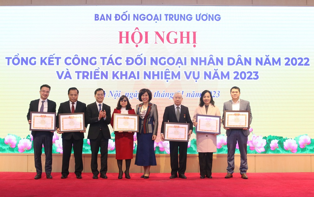 Với những thành tích xuất sắc trong công tác đối ngoại nhân dân trong thời gian qua, Ban Đối ngoại Trung ương đã trao tặng Cờ thi đua tập thể dẫn đầu trong công tác đối ngoại nhân dân năm 2022 cho Trung ương Đoàn TNCS Hồ Chí Minh; Bằng khen cá nhân có thành tích xuất sắc trong công tác đối ngoại nhân dân cho đồng chí Nguyễn Tường Lâm, Bí thư Trung ương Đoàn, Trưởng Ban Quốc tế Trung ương Đoàn; Kỷ niệm chương “Vì sự nghiệp đối ngoại nhân dân” cho đồng chí Trịnh Thị Mai Phương, nguyên Uỷ viên Ban Chấp hành, nguyên Quyền Trưởng Ban Quốc tế Trung ương Đoàn, Phó Cục trưởng Cục Ngoại vụ, Bộ Ngoại giao; Kỷ niệm chương “Vì sự nghiệp đối ngoại nhân dân” cho đồng chí Bùi Diễm Hường, Giám đốc Trung tâm Phát triển Hợp tác Quốc tế Thanh niên.