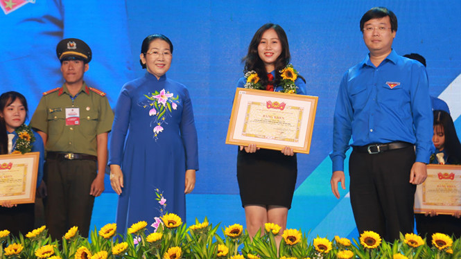 Bí thư thứ nhất Trung ương Đoàn Lê Quốc Phong và Phó bí thư Thành ủy TP.HCM Võ Thị Dung tặng bằng khen, tuyên dương bí thư chi đoàn giỏi tiêu biểu