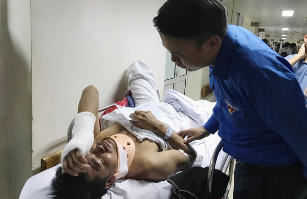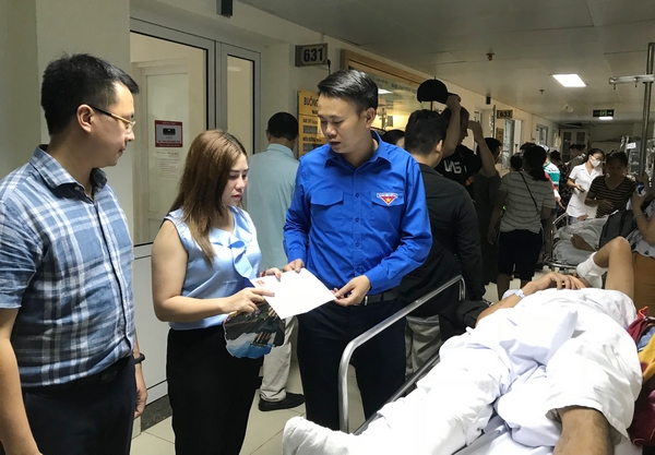 Đồng chí Đỗ Tiến Dũng, Phó Ban Thanh niên Công nhân và Đô thị Trung ương Đoàn thăm hỏi động viên anh Lương Văn May tại Bệnh viện Việt Đức