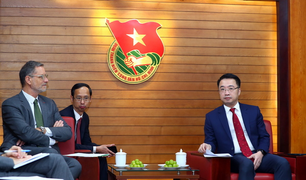 Đồng chí Nguyễn Tường Lâm, Bí thư Trung ương Đoàn, Chủ tịch Hội LHTN Việt Nam tiếp xã giao Đại sứ Pháp tại Việt Nam.