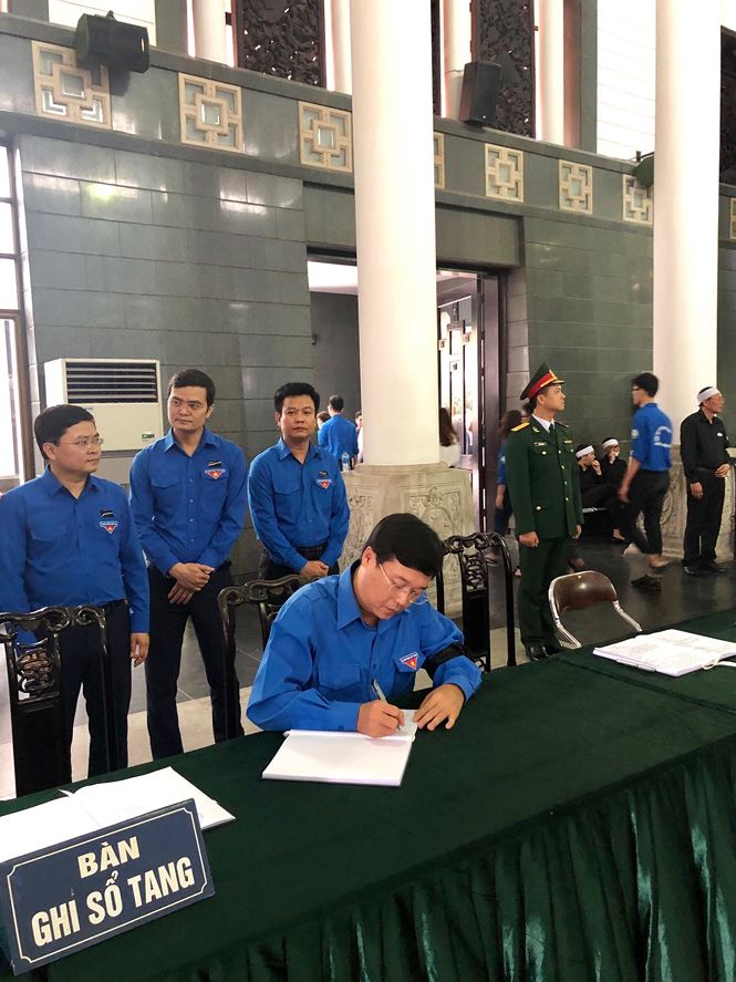 Bí thư thứ nhất T.Ư Đoàn Lê Quốc Phong ghi sổ tang tại lễ viếng Trung tướng Đồng Sỹ Nguyên