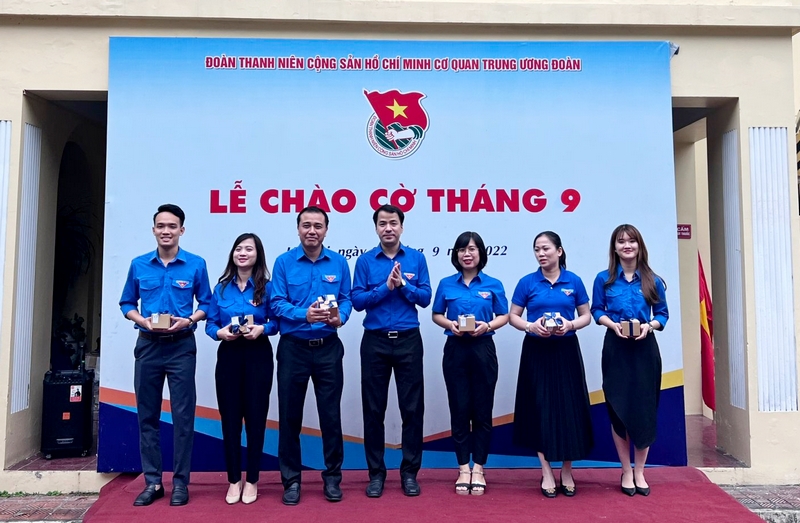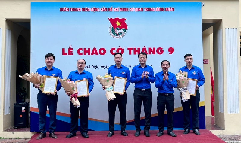 Tại lễ chào cờ, thay mặt Ban Bí thư T.Ư Đoàn, đồng chí Ngô Văn Cương đã trao quyết định và tặng hoa chúc mừng các đồng chí được bổ nhiệm, phân công nhiệm vụ mới.