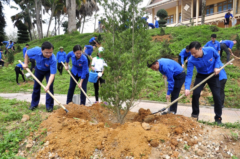 Đồng chí Nguyễn Anh Tuấn - Bí thư Thường trực Trung ương Đoàn cùng với Thường trực, cán bộ Đoàn tỉnh Yên Bái tham gia trồng cây xanh hưởng ứng "Tết trồng cây đời đời nhớ ơn Bác Hồ” cấp quốc gia xuân Kỷ Hợi 2019