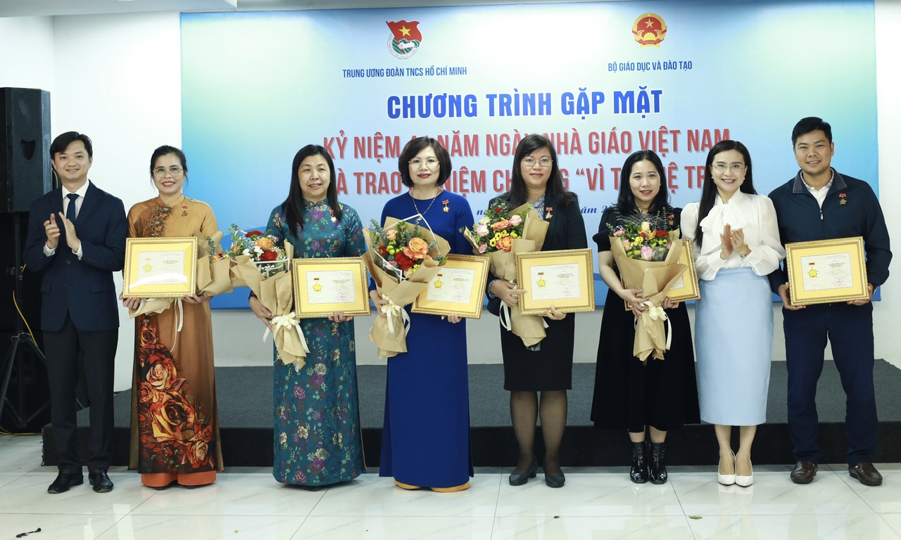 Tại buổi gặp mặt, đồng chí Nguyễn Phạm Duy Trang - Bí thư Trung ương Đoàn, Chủ tịch Hội đồng Đội Trung ương và đồng chí Nguyễn Minh Triết- Bí thư Trung ương Đoàn, Chủ tịch Trung ương Hội Sinh viên Việt Nam đã trao tặng Kỷ niệm chương “Vì thế hệ trẻ”-phần thưởng cao quý nhất của Ban Chấp hành Trung ương Đoàn TNCS Hồ Chí Minh cho 06 đồng chí lãnh đạo, chuyên viên các Vụ, Cục của Bộ Giáo dục và Đào tạo vì những đóng góp cho sự nghiệp bồi dưỡng, giáo dục thế hệ trẻ.