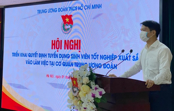 Phát biểu tại Hội nghị, đồng chí Nguyễn Ngọc Lương - Bí thư Trung ương Đoàn, Chủ tịch Hội Trung ương khẳng định, tuyển dụng sinh viên xuất sắc vào làm việc các cơ quan Đảng, Nhà nước và hệ thống chính trị là một chủ trương rất quan trọng. Đây là lần đầu tiên Trung ương Đoàn tổ chức tuyển dụng sinh viên tốt nghiệp xuất sắc vào làm việc tại cơ quan Trung ương Đoàn. Qua nhiều vòng sát hạch kỹ càng, trách nhiệm, khách quan và nghiêm túc, có 01 sinh viên đủ các điều kiện tiêu chuẩn về công tác tại cơ quan Trung ương Đoàn