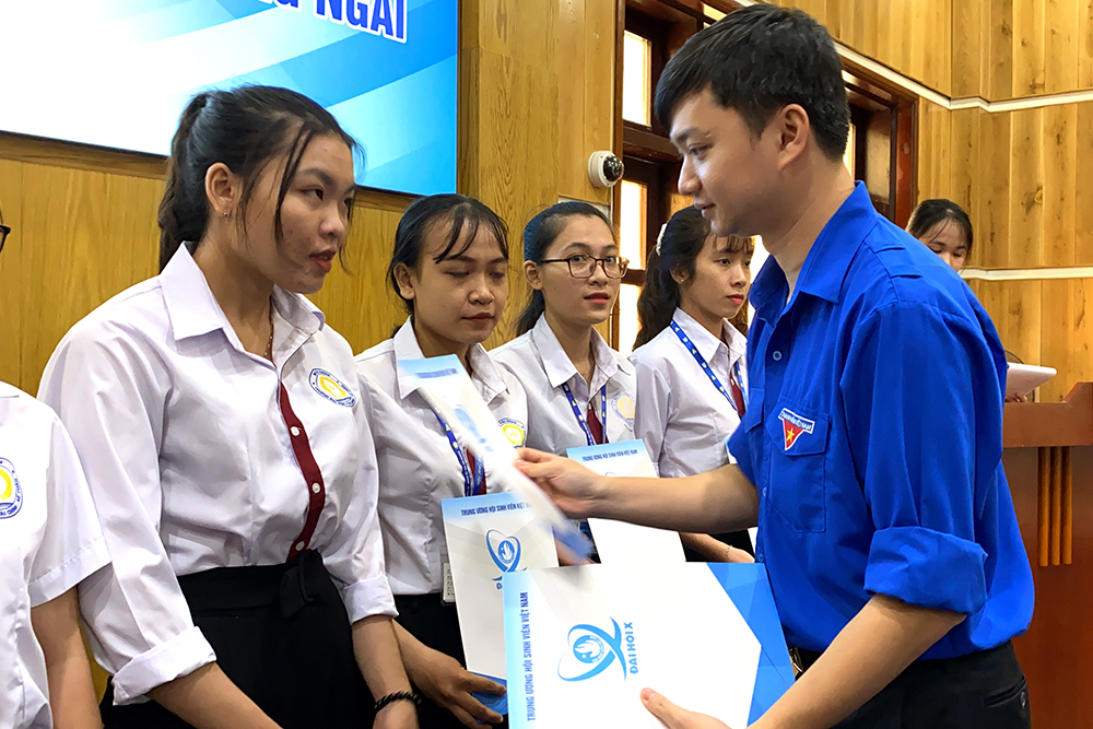 Tại trường THPT Phạm Văn Đồng (huyện Mộ Đức), đoàn công tác Trung ương Hội Sinh viên Việt Nam đã trao 20 suất học bổng (mỗi suất 1,5 triệu đồng) cho học sinh có hoàn cảnh khó khăn, gia đình bị ảnh hưởng nặng nề do các đợt bão, lũ vừa qua.